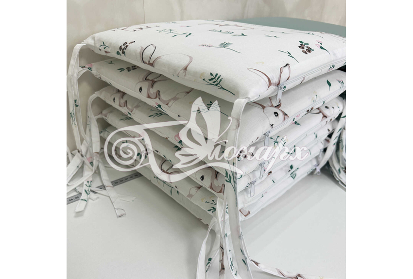 Бортики СО СЪЕМНЫМИ ЧЕХЛАМИ в кроватку: защитят Вашего малыша от ушибов, сквозняков, солнечных лучей и не дадут малышу запутаться в прутьях кроватки.