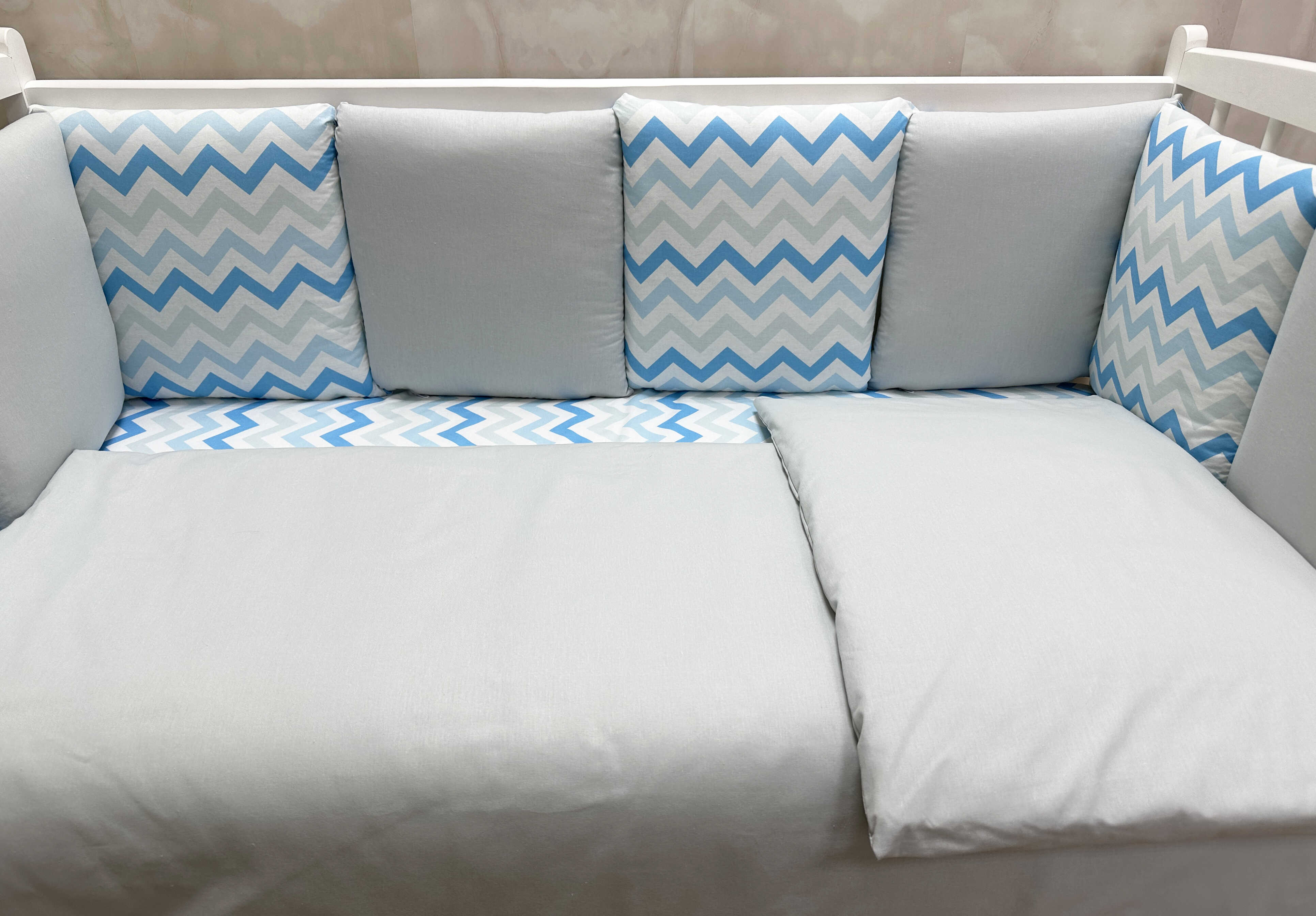 Комплекты в кроватку с бортиками, как и любые другие должны быть, в первую очередь, изготовлены из натуральных материалов. Чтобы все элементы бортика были в чехлах и могли иметь возможность для стирки и дальнейшего использования. Комплект в кроватку со съемными чехлами пользуется большей популярностью, так как это необходимо для здоровья малыша.