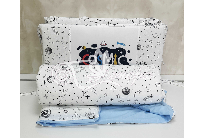 Бортики СО СЪЕМНЫМИ ЧЕХЛАМИ в кроватку: защитят Вашего малыша от ушибов, сквозняков, солнечных лучей и не дадут малышу запутаться в прутьях кроватки. - Простыня на резинке 60х120 см (подходит для стандартной кроватки)