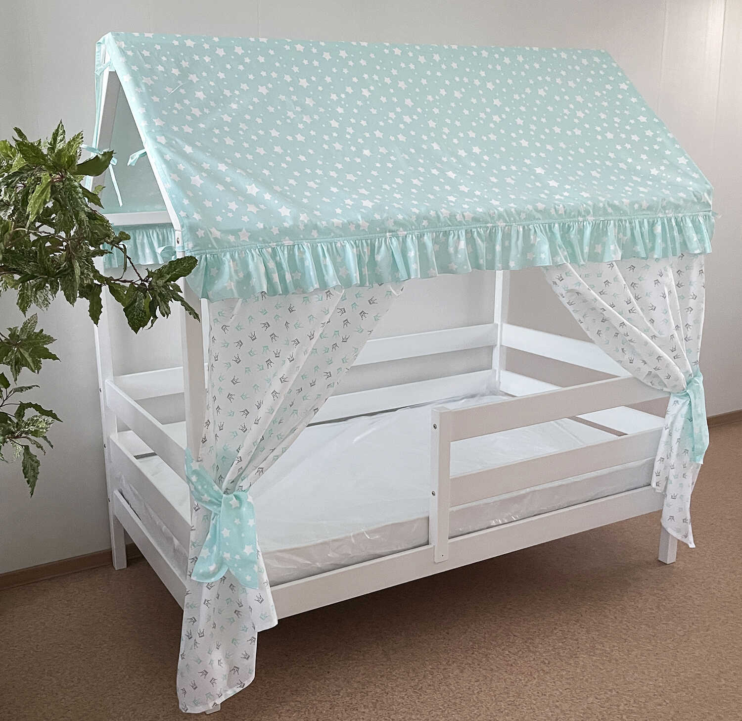 Крыша и шторы для кроватки домика ТД-9
